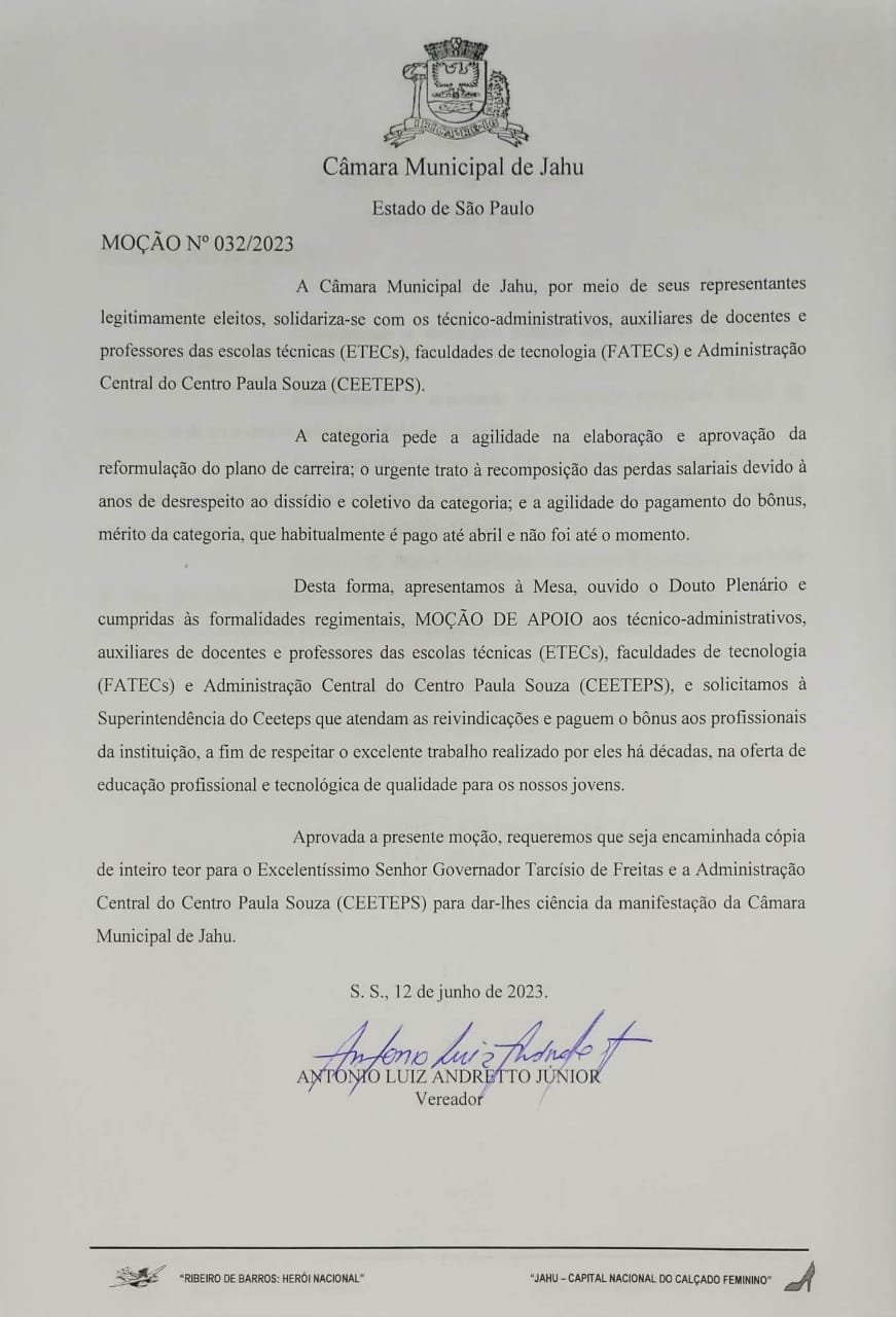 - Moção de apoio Câmara de Jaú