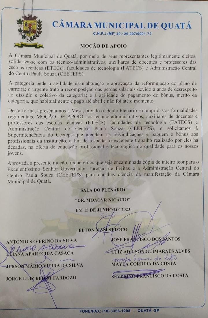 - Moção de apoio Câmara de Quatá