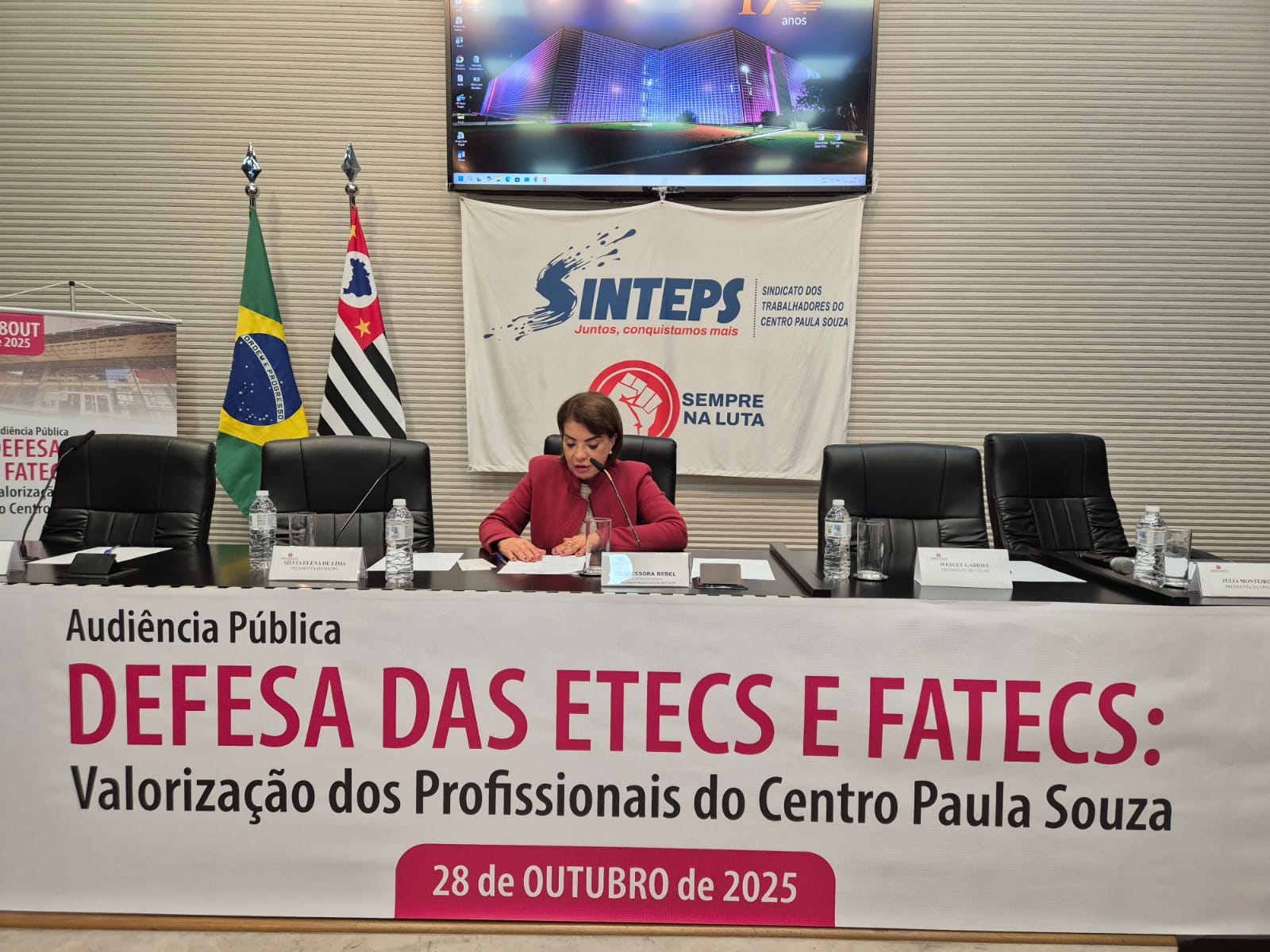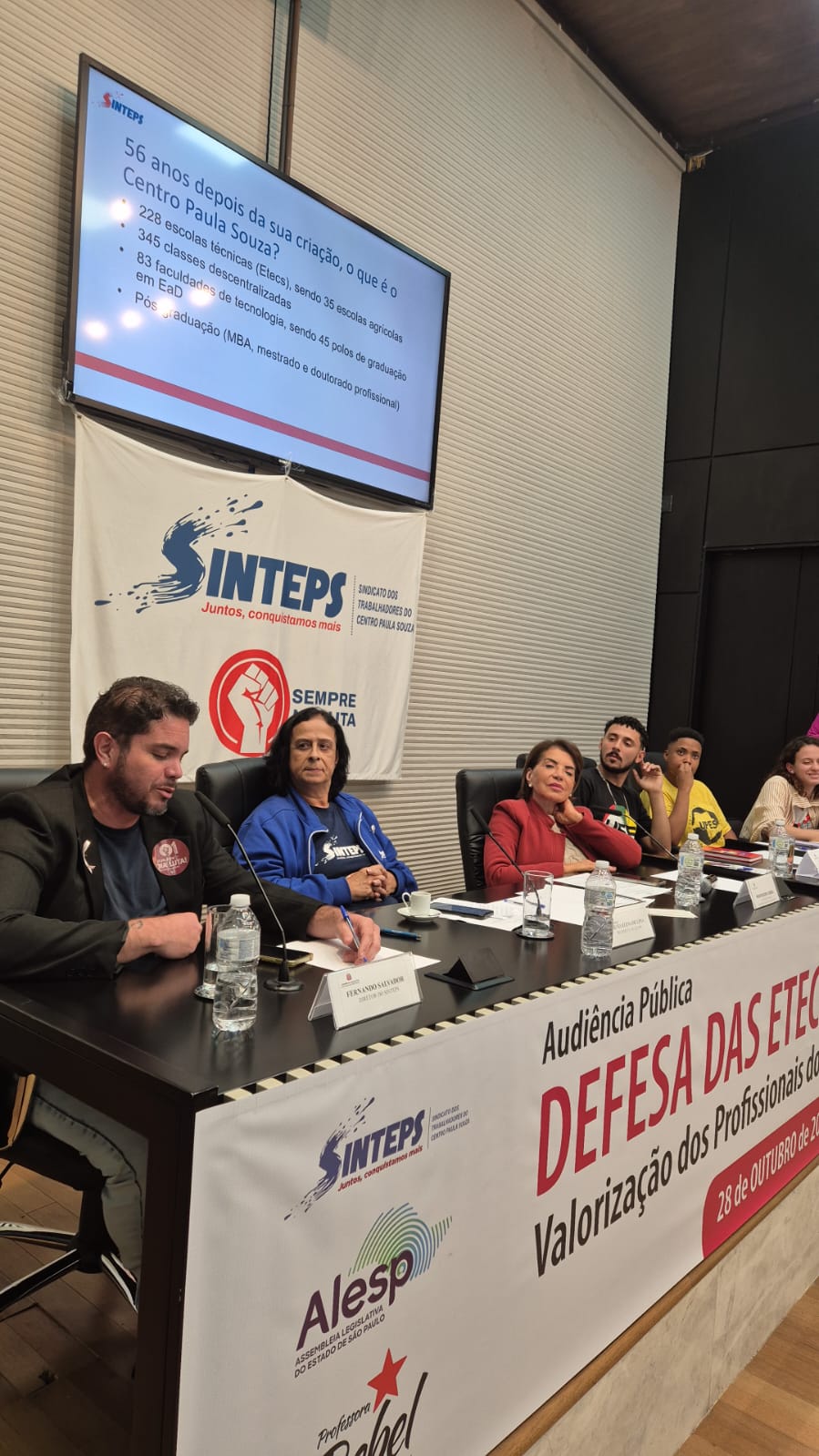 Audiência pública na Alesp, organizada pelo Sinteps e com o apoio do mandato da deputada Professora Bebel, em defesa das reivindicações das trabalhadoras e dos trabalhadores do Centro Paula Souza.