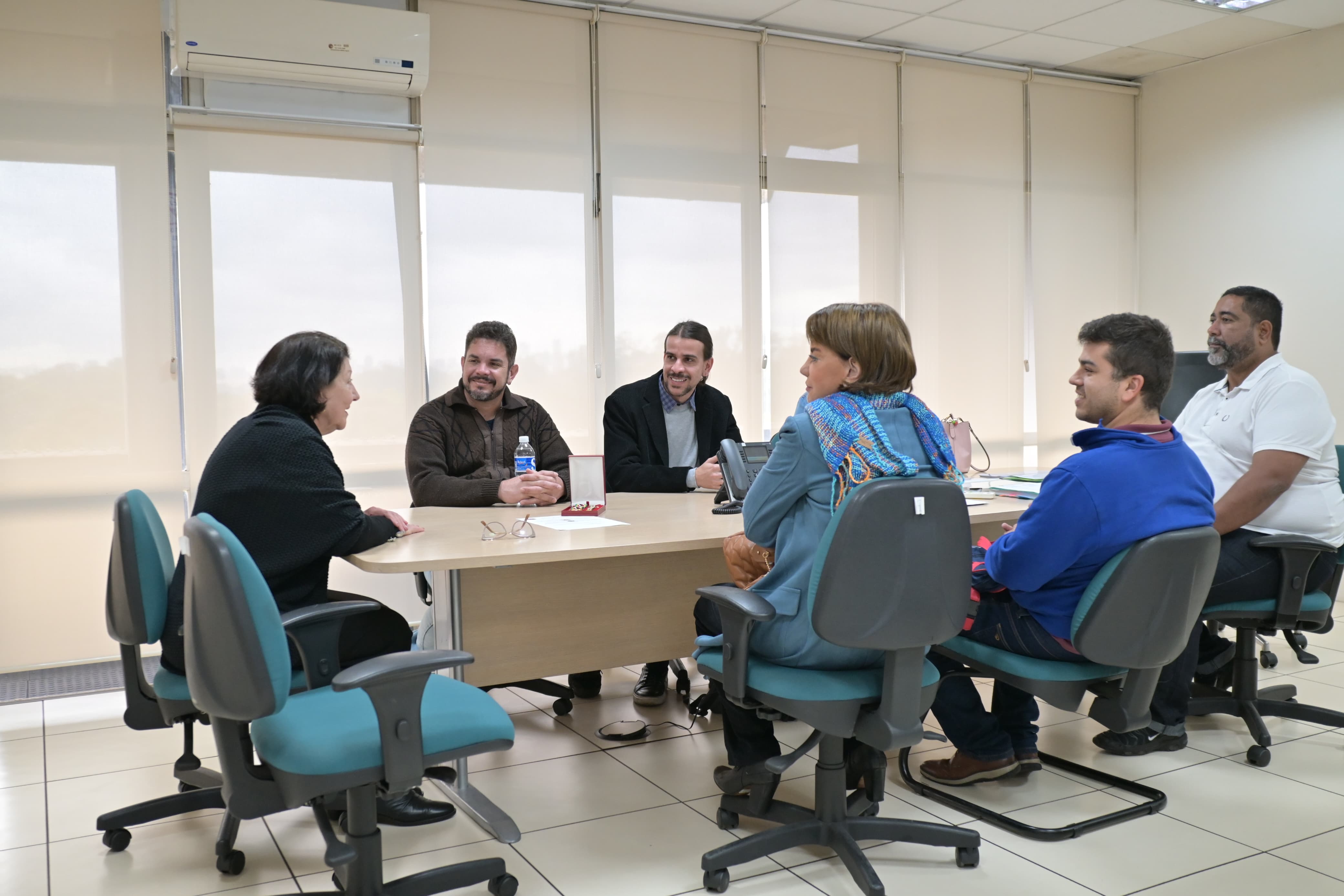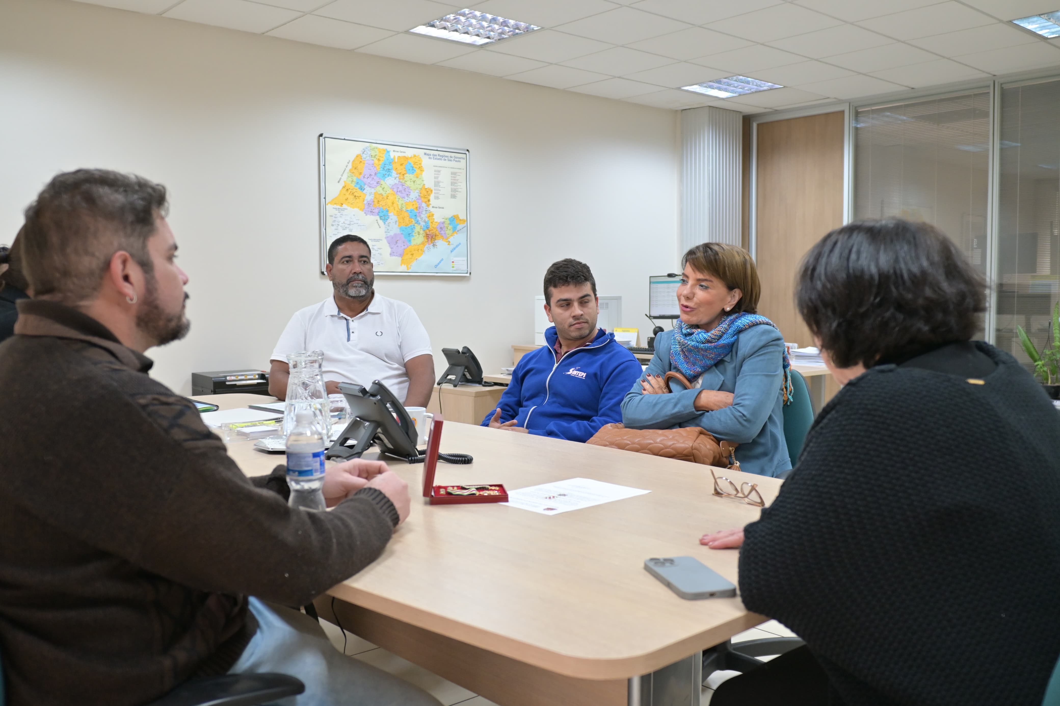 A superintendente do IAMSPE, Dr.ª Maria das Graças Bigal, recebe a diretoria do Sinteps, a pedido da Dep. Prof. ª Bebel, em 6/8/2025, para tratar do acesso dos trabalhadores do Centro Paula Souza, sobre o descredenciamento de hospitais pelo estado, rede credenciada e outros temas da saúde.