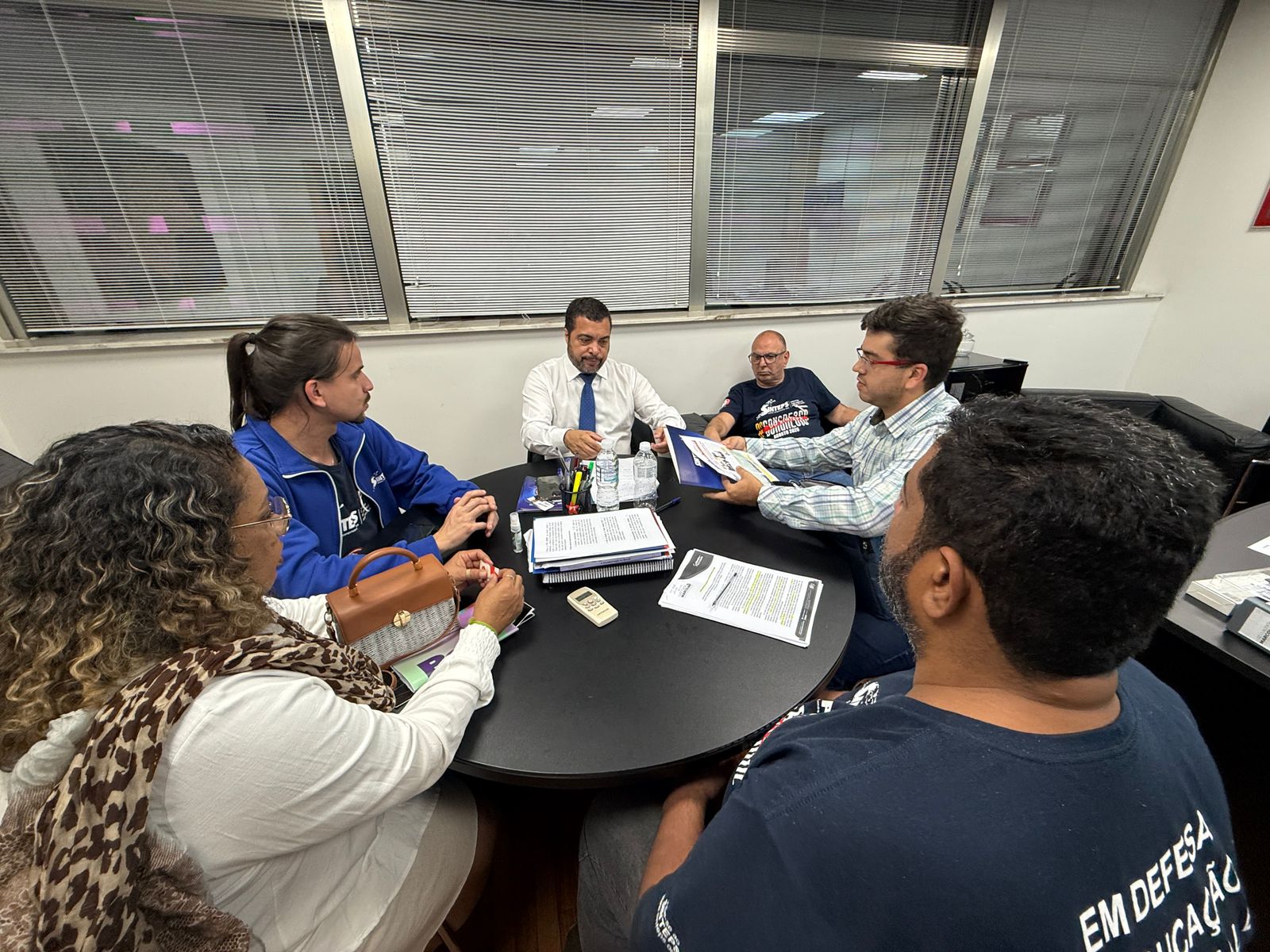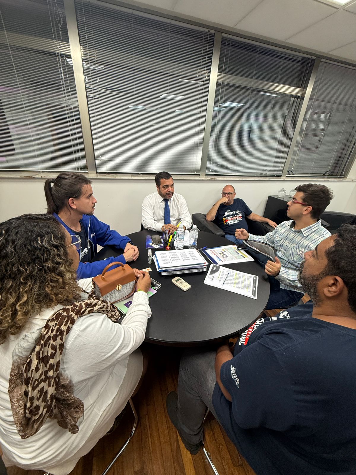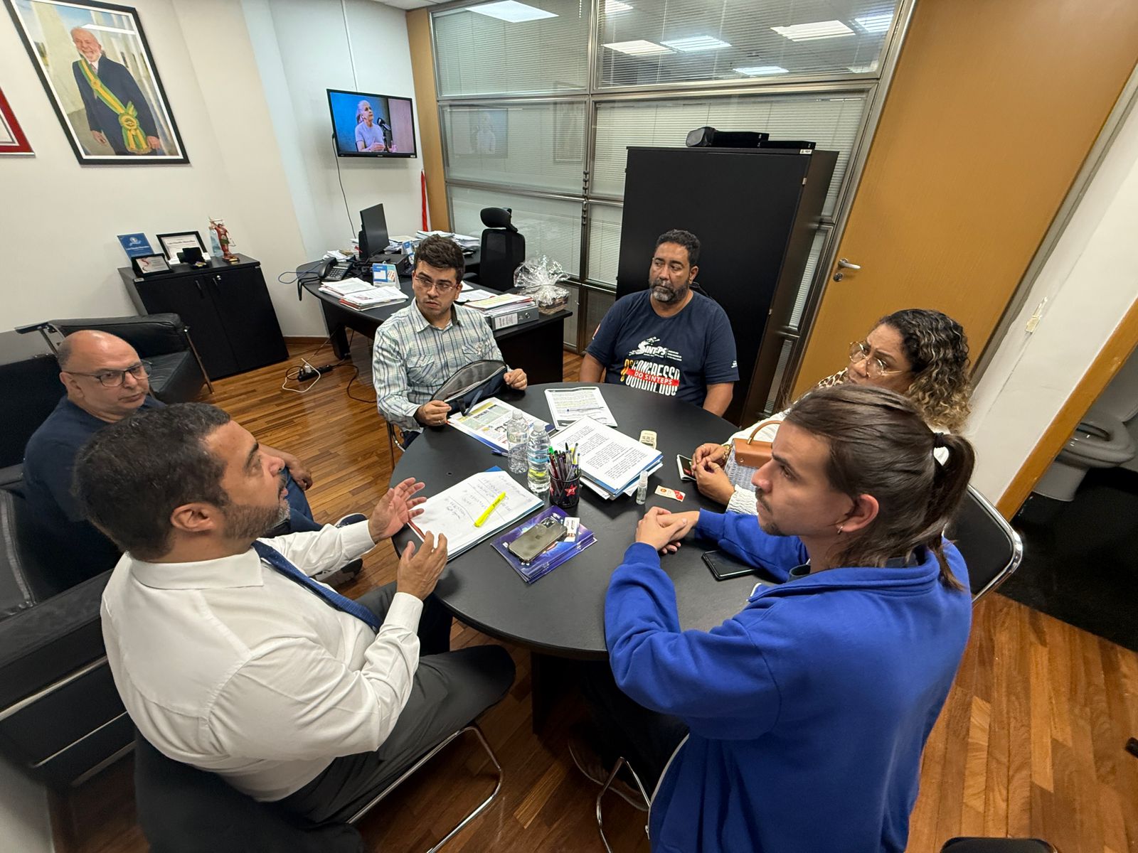 O dep. estadual Luiz Claudio Marcolino (PT), vice-presidente da Comissão de Finanças e Orçamento da Alesp, recebeu a comitiva de diretores do Sinteps