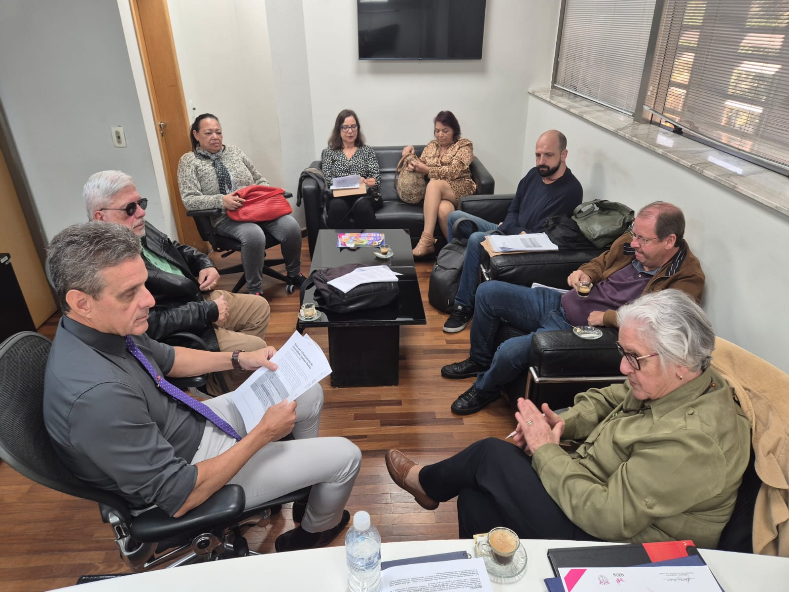 Sinteps junto com o Fórum das Seis, em reunião com assessor da deputada Solange Freitas (União Brasil), o advogado Fernando Guedes, discutindo a LDO 2026 e as emendas em prol das universidades e do Centro Paula Souza. A deputada é relatora do projeto.
