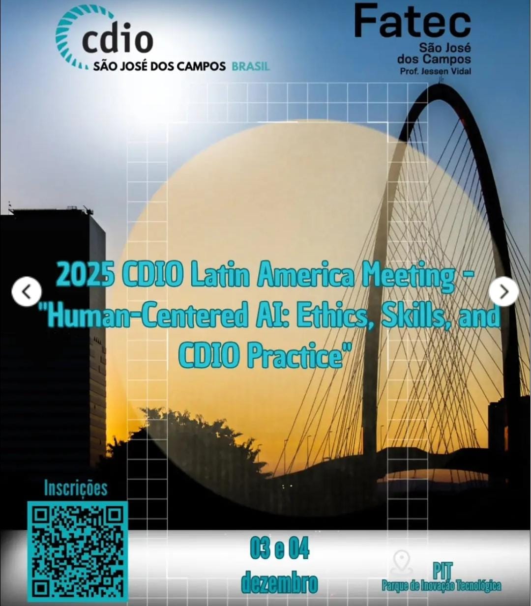 1. Reunião Latino-Americana do CDIO 2025 que reuniu educadores, estudantes e líderes da indústria para explorar como a IA pode aprimorar a educação em engenharia — sem perder de vista as pessoas, a ética e o impacto social.