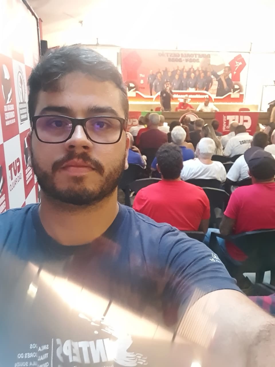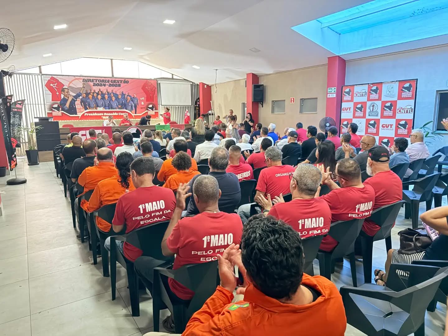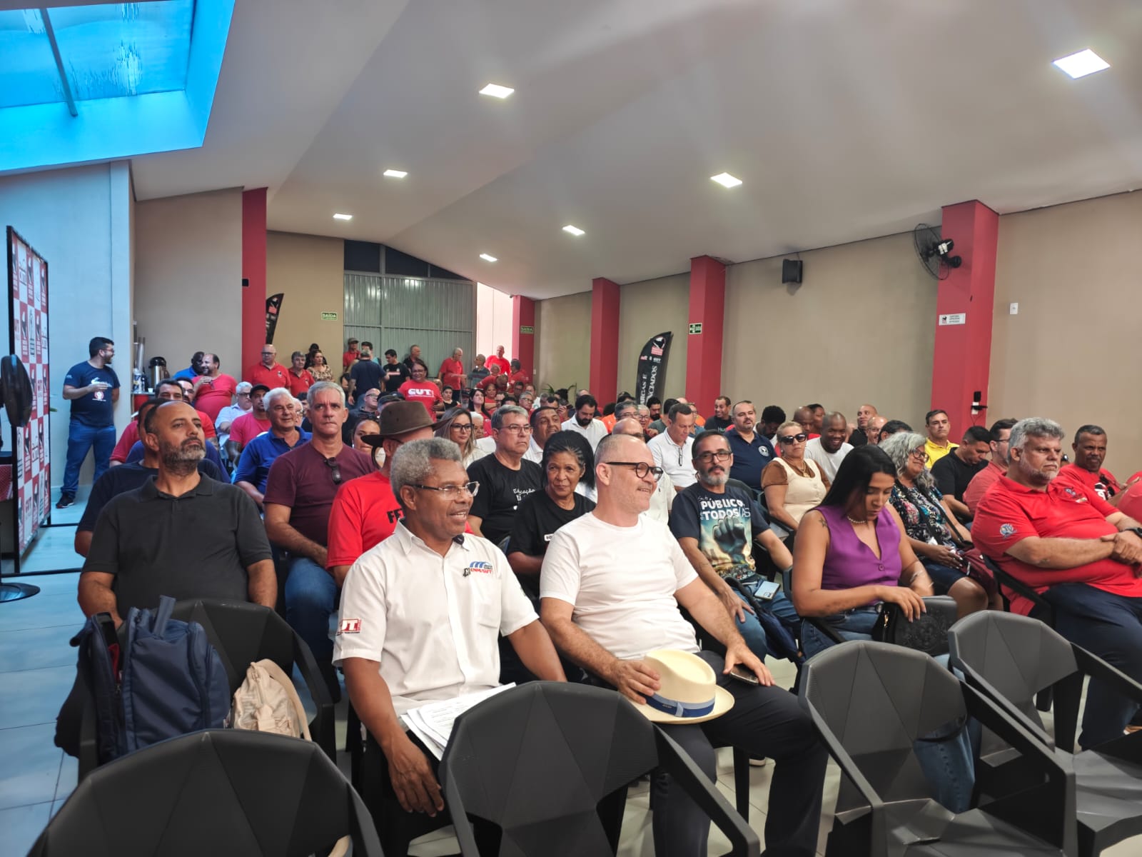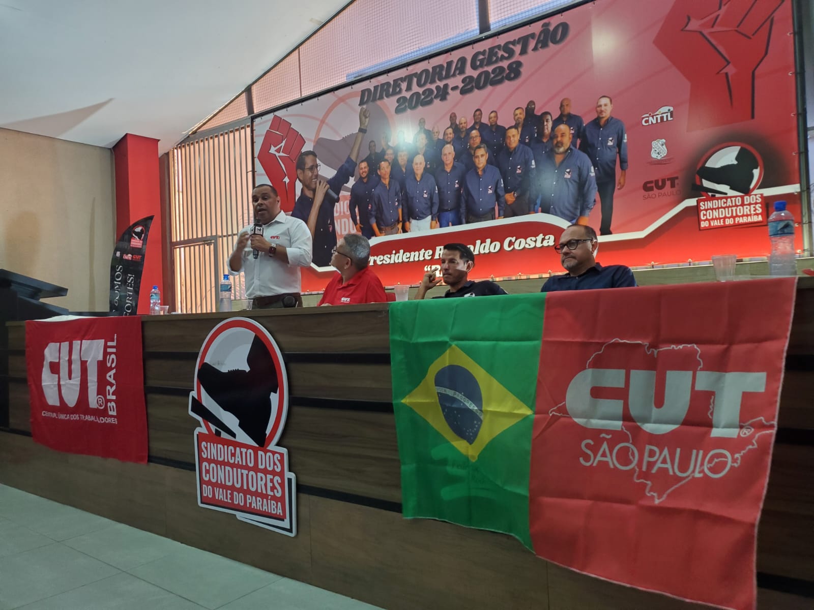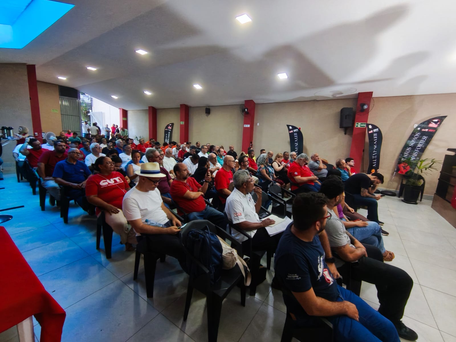Sinteps presente na plenária da Central Única dos Trabalhadores (CUT-SP), subsede do Vale do Paraíba, em 12/2/2026. A atividade, realizada na sede do Sindicato dos Condutores de SJCampos e região, discutiu os desafios da classe trabalhadora, as conjunturas internacional, nacional e, especialmente, estadual. Também houve a eleição da nova coordenação da subsede, com José Carlos, do Sindicato dos Condutores, sendo substituído por Marcelo Reis, do SindMetau. O Sinteps esteve representado por seu diretor Renato de Menezes Quintino.