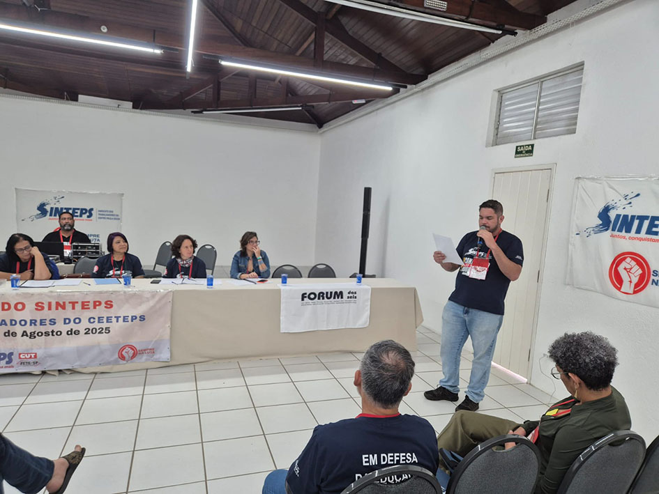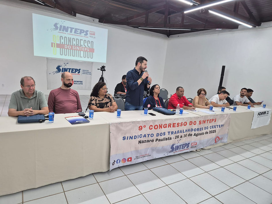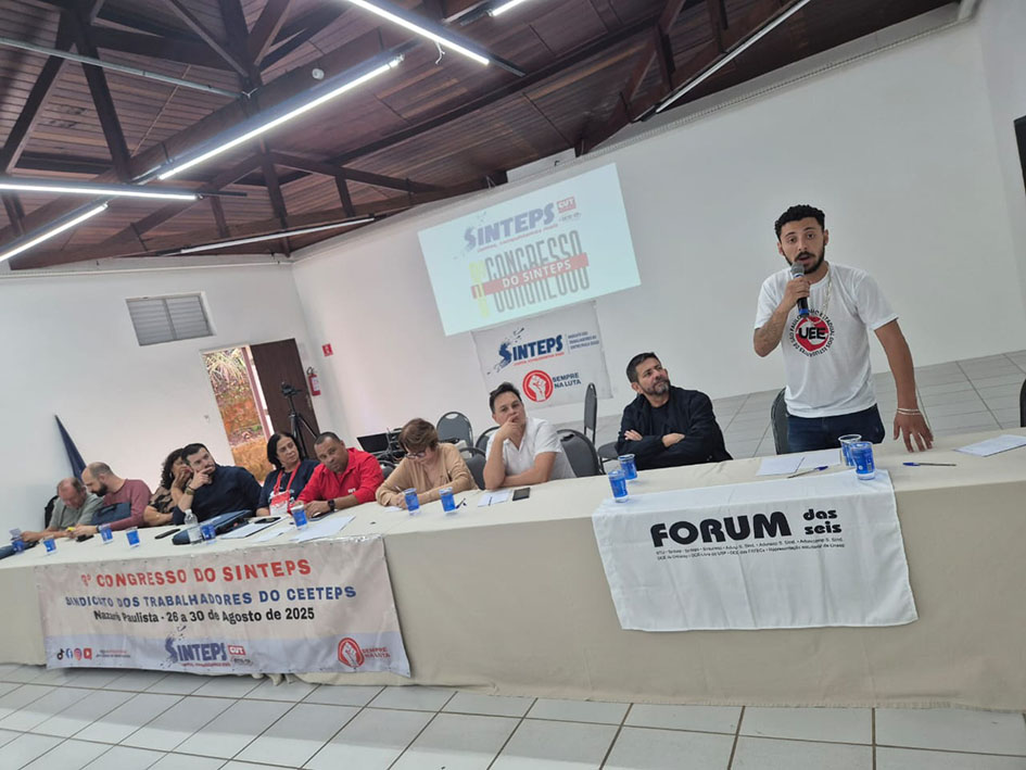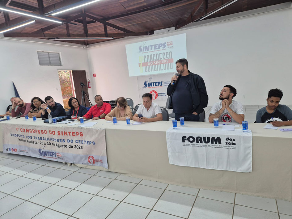 José Luís Pio Romera, diretor do Sindicato dos Trabalhadores da Unicamp (STU), falou em nome do Fórum das Seis, instância que agrupa os sindicatos e as entidades estudantis das três universidades estaduais paulistas e do Centro Paula Souza. “Ao longo de mais de três décadas de existência do Fórum, o Sinteps sempre foi uma entidade presente nas lutas em defesa da educação, e por isso fazemos questão de saudar este Congresso e nos colocar à disposição das lutas nas ETECs e FATECs”, disse.