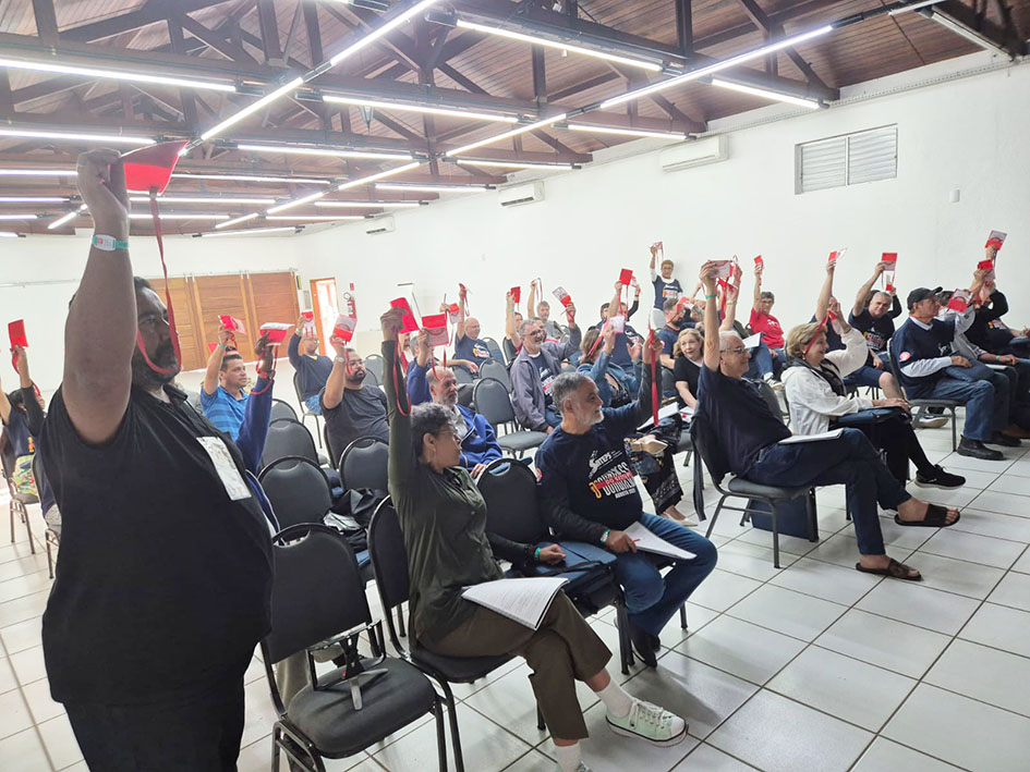 Os debates culminaram na aprovação de um robusto plano de lutas, que reúne bandeiras gerais – defesa da soberania e da democracia do nosso país, da preservação ambiental e dos serviços públicos, pelo fim da escala 6X1, contra quaisquer tipos de preconceitos e opressões, entre outros – e reivindicações específicas da categoria, como a aprovação de um plano de carreira que contemple os anseios dos trabalhadores do Centro, a garantia de benefícios dignos, a defesa dos cursos e das vagas públicas, manutenção e infraestrutura de qualidade para as unidades etc.