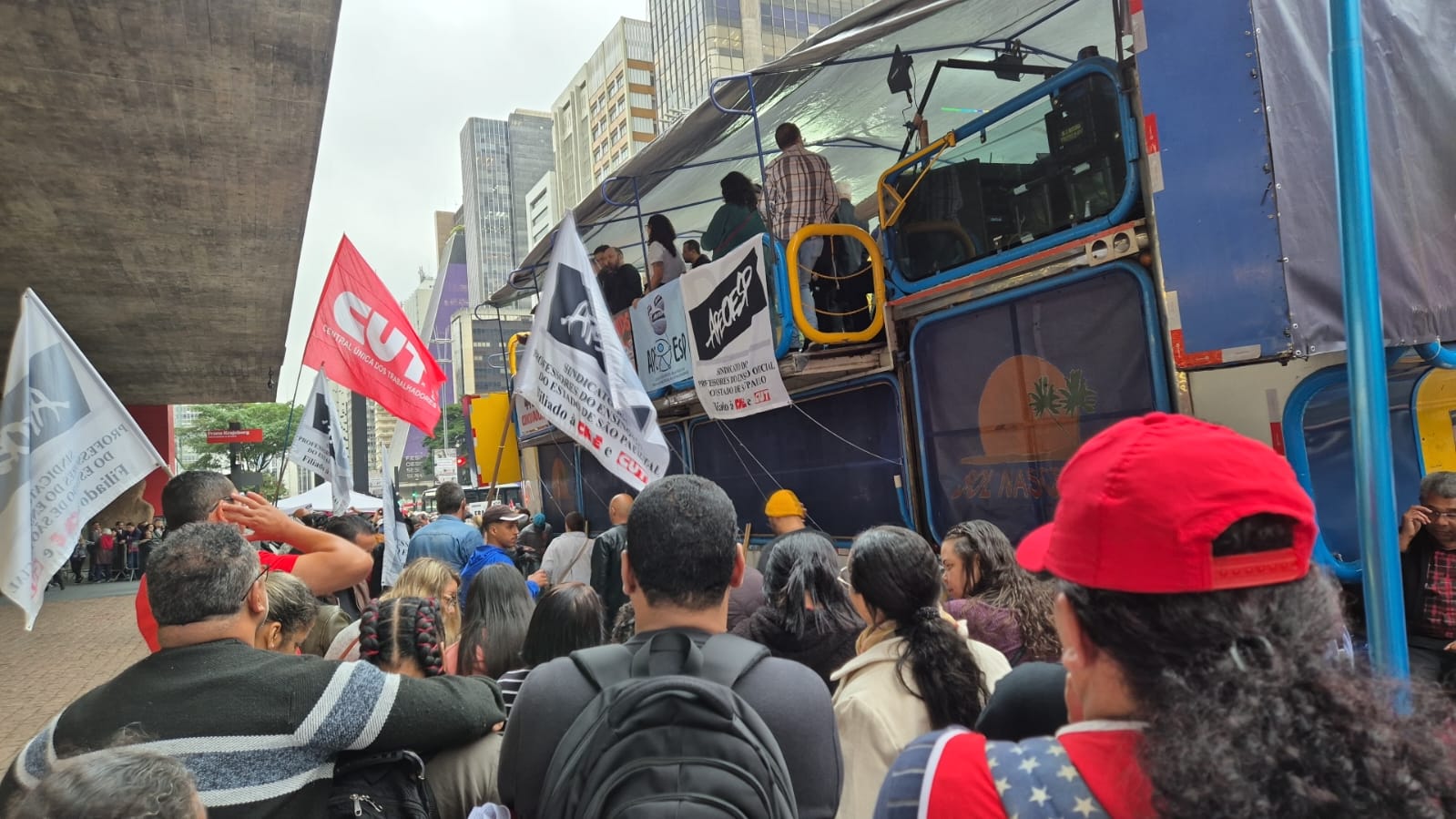 O Sinteps foi uma das entidades presentes no ato unificado do funcionalismo público da educação, em 6 de junho, no vão livre do MASP, na avenida Paulista, em São Paulo. Falando em nome da entidade, Felipe Chadi denunciou o descaso do governo Tarcísio de Freitas com as ETECs e FATECs, a enrolação em torno da revisão da carreira, o minguado reajuste salarial de 5%, entre outros.