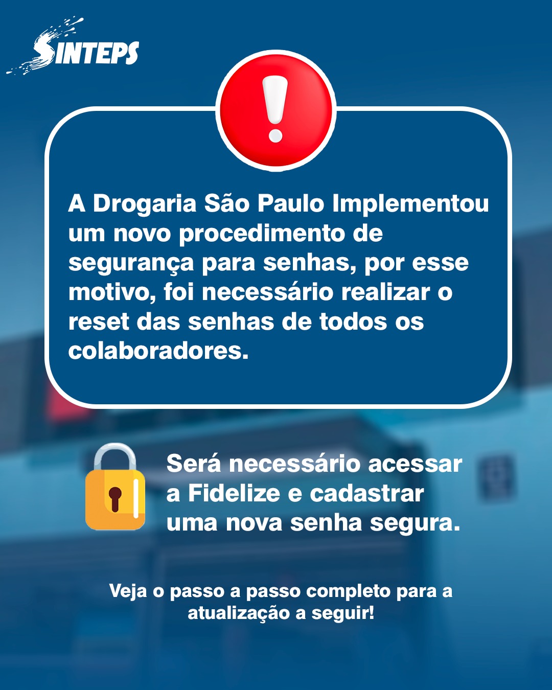 A rede de farmácias Drogaria SP implementou um novo procedimento de segurança para senhas. Por esse motivo, foi necessário realizar o ‘reset’ das senhas de todos os usuários.